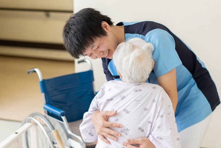 以前はリハビリがメインの施設でしたが、ここは介護とリハビリが分かれていて、目的が明確なので自分のやりたい介護ができるのでありがたいなと思いました。はじめは緊張しましたが、皆さん優しくて仲が良いので、簡単に打ち解けることが出来ました。ミスをした時に「これやっていなかったからやっておいたよ」と優しく教えてくれた時に良い職場だと思いました。ミスを指摘してもらえると学んでいると実感できます。