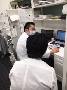 そんな彼に心電図の読み方を教えている1年目のK.T先生