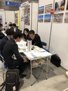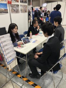 広い会場、全国から集まる病院…会場の雰囲気に圧倒されつつ、会場奥の新潟県ブースで学生さんたちが集まるのを待っていると…立川綜合病院のブースにもたくさんの学生さんが来てくれました。